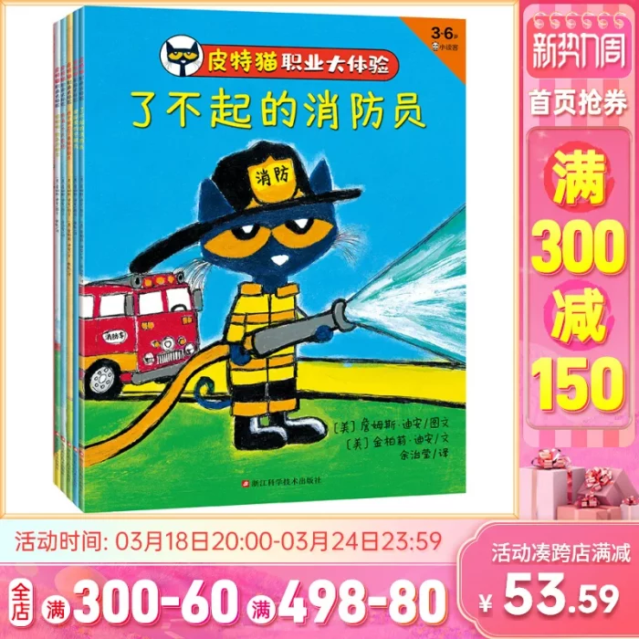 皮特猫职业大体验(共6册3-6岁) 角色扮演绘本让孩子玩出创造力 儿童绘本3-6岁 皮特猫新版 职业体验 角色扮演绘本